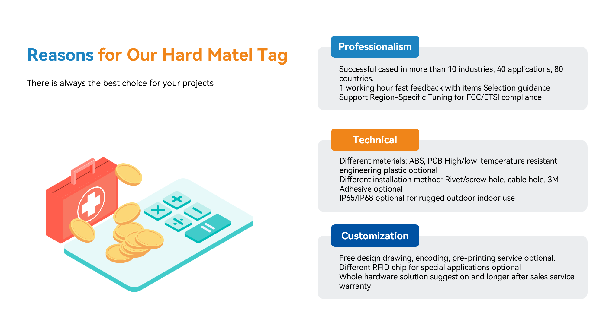 | 标签和标记 | 柔性抗金属RFID标签 | 直接附着于金属资产(服务器、工具、机械)。 |