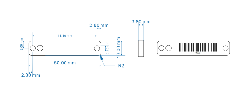 The P5010-35 is a high-performance PCB on-metal tag with an increased thickness of 3.5mm, potentially offering better mechanical strength. Its most notable feature is the default Impinj Monza 780 chip, renowned for its excellent global band performance and high sensitivity. It operates stably across different UHF bands worldwide (FCC, ETSI, etc.) and delivers an excellent read range of approximately 4 meters.